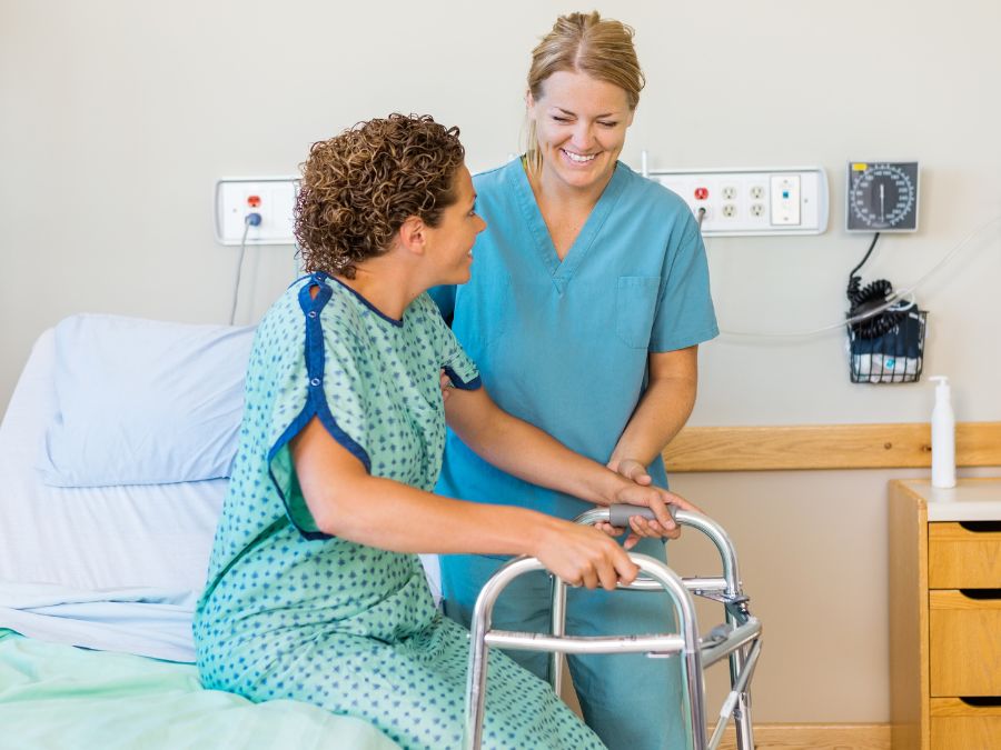 Dal secondo giorno molti pazienti riescono a stare in piedi e a compiere i primi passi con l’aiuto di un deambulatore. Se le condizioni lo permettono, dal terzo giorno il deambulatore può essere sostituito con le stampelle, mentre prosegue il lavoro riabilitativo con esercizi di mobilizzazione e rinforzo muscolare.