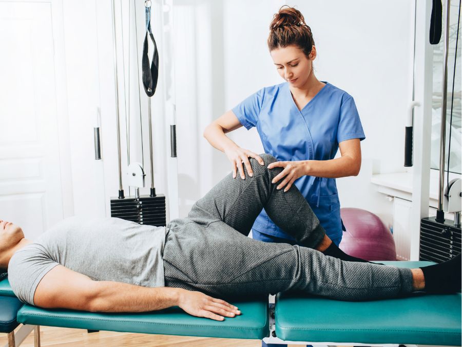 Nelle settimane successive, il recupero prosegue a casa oppure in un centro riabilitativo. Il fisiatra o il fisioterapista pianificano esercizi specifici per migliorare progressivamente la mobilità articolare, rinforzare i muscoli della coscia e recuperare equilibrio e coordinazione.